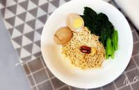 「豆丝面喷香椒麻」再加个烫芥蓝菜、茶叶蛋、缀饰的坚果