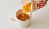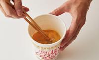 首先你只需要先好好享用你泡好的日清杯面,但这时请注意,如果你想成就茶碗蒸的美味,那么就请只吃掉面条,留下里面所有的配料以及汤头。
