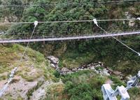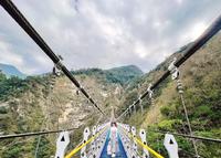 行走在吊桥上,越是往中间走整个桥面越晃,相当刺激,有惧高症的人应该会步步为营,而我们边走边欣赏左右山谷美景,还能看到之前的旧吊桥,相当有趣。