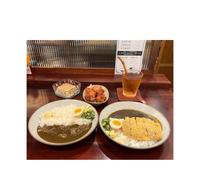 咖哩味道非常浓郁稍微有点辣度,还加了店家桌上的辣油多了芝麻的香气,第一次看到配菜是秋葵,随餐都会附上一杯乌龙茶,热热的天喝到瞬间清凉大半,还可以可免费加饭加酱各一次。