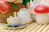 好像有魔法的蘑菇就是小精灵的家!上面趴着一只小兔子,实在是让人惊呼!太可爱了吧!跟我回家吧!这次杯子设计很实用,比起以前的款式会不小心被兔耳朵戳到脸,这次的都是可以放心使用的玉兔杯喔!摆在桌上当装饰也很疗癒呢!
