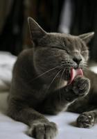 猫咪舔拭自己身体时是一种清洁的动作,因此倘若牠闻到人类身上有一股陌生的味道,比如香水味、汗水味或是洗澡后带有沐浴乳气息,都会被牠归类为是「奇怪的味道」而觉得你脏脏的,因此就会藉由舔舔帮助你清洁、洗澡!