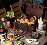 浮夸的藏宝箱一上桌瞬间吸引大家目光!里头除了澳洲和牛小排、A5羽下牛小排,还有老饕鸡松阪跟美国红樱猪梅花。肉的品质不错,只要简单烧烤就很好吃。