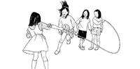 「多人跳绳」比起说是韩国人爱玩的童年游戏,不如说是「无国界游戏」,相信每个人在学生时期一定有揪朋友一起玩过,没有的话学校体育课也一定会上!规则很简单,拿一条比起一般跳绳更粗更长的特制跳绳,可能是塑胶的也可能是尼龙或棉制,挑两个人握着绳子两端开始甩,其余的人看准时机轮流跳进来就行了!如果要比赛的话,通常是计算所有人可以坚持跳几下或是能持续多久。